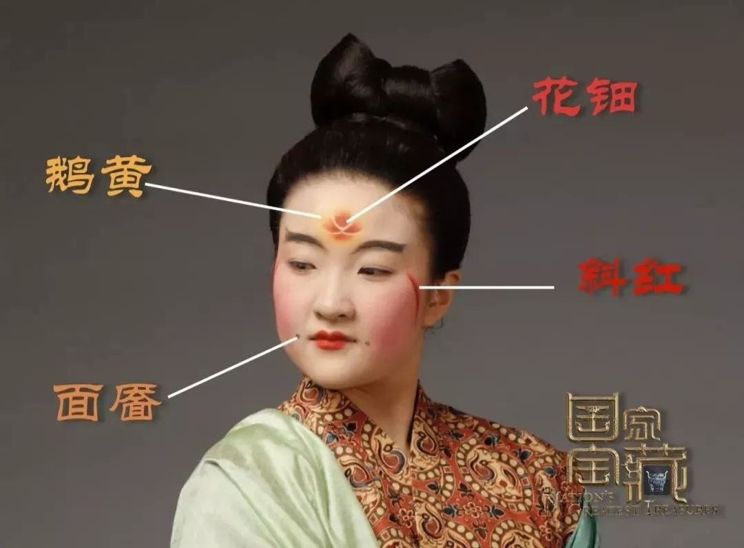 知识拼图5:古代面饰大致分为:额黄、斜红、花钿、面靥。
