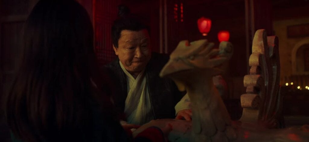 木兰父亲跟她讲述凤凰浴火重生的传说,实则是错置了西方文化于中华文化中凤凰的象征意义。凤凰的石像出现在她家祠前当守门兽,也显奇怪。中国古代建筑所熟知的,用以镇宅和辟邪的守门兽,从来不会有凤凰。试想,原本在高空自由飞翔的鸟禽竟蹲守在门前,那个画面就已经很受憋了。而且家祠门前左手边置的不知是貔貅还是麒麟,右手则置了凤凰的这样安排有违了中国美学对称的讲究。这等不协调的装置是纯粹为了让凤凰入戏还是别有用意?也许只有制作组才知道。